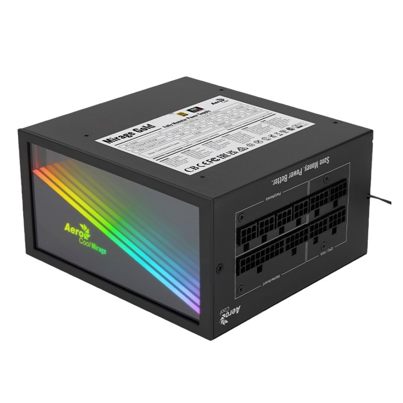 | Otras Características | – Protecciones: OVP, UVP OPP, SCP, OCP – Certificado: 80Plus Gold – Iluminación: RGB Infinity Mirror – Ventilador de alta presión de 12 cm con control térmico optimizado – Condensadores japoneses de 105°C – Para cambiar entre la placa base y el control por botón Asegúrate de que la fuente de alimentación está conectada al cabezal ARGB de la placa base Mantenga el botón de la fuente de alimentación durante 3 segundos El control cambiará de la fuente de alimentación a la placa base – Peso: 2 kg – Dimensiones: 24.3 × 9.7 × 19.9 cm |