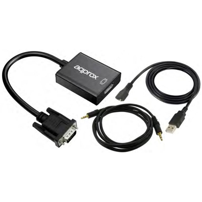 | Caracteristicas | – Soporta resoluciones a 720p/1080i/1080p – Cable de audio (incluido) – Cable de alimentación USB (incluido) – Longitud del cable: 20cm Conexiones – VGA (in) – Jack 3.5mm (in) – Micro USB (power) – HDMI (out) |