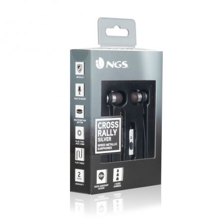 Auriculares Intrauditivos NGS CROSS RALLY SILVER – Drivers 9MM – TECNOLOGÍA VOZ ASSISTANT – 20-20HZ – 95DB – JACK 3.5MM – CABLE 1.2M