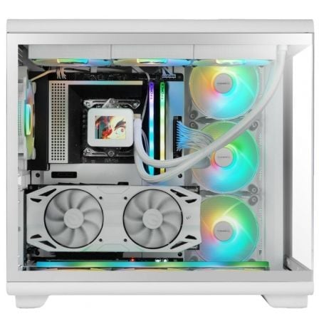 La caja MC-REV está diseñada para llevar el rendimiento y la estética gaming al máximo nivel. Su revolucionario sistema de flujo de aire invertido, con tres ventiladores ARGB inclinados a 25° integrados, dirige el aire directamente a la GPU y la placa base, asegurando una disipación térmica óptima en cualquier configuración. Su estructura de doble cámara mejora la gestión del flujo de aire y el cableado, mientras que su compatibilidad con placas base de conector inverso permite un interior más limpio y eficiente. Además, incorpora un sistema de montaje vertical para GPU, realzando la presentación del hardware. Con un diseño sin tornillos y paneles de cristal templado a presión, la MC-REV garantiza un montaje rápido, sin esfuerzo y con una visión panorámica espectacular del setup.