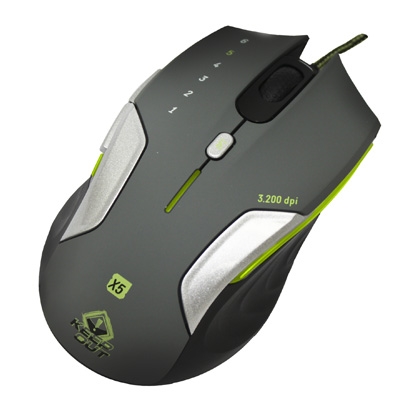 El X5 es un ratón Gaming que se centra en las necesidades esenciales de los jugadores con un estilo normal de juego. Funciona con un sensor óptico de extrema calidad ajustable de 4 niveles de DPI, sus valores están comprendidos entre 400-3200DPI, puede ser fácilmente identificado por su indicador de la luz central.