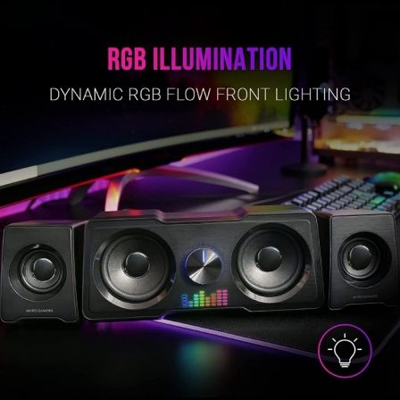 Potencia y calidad de sonido con el más innovador sistema 2.2. 35W de potencia con DSP digital, doble subwoofer, control directo de volumen e iluminación RGB flow. Diseñado especialmente para conseguir un potente rendimiento de graves y tonos medios totalmente nítidos, el sistema de sonido MS22 revoluciona tu setup con un look espectacular y la mejor tecnología de sonido.