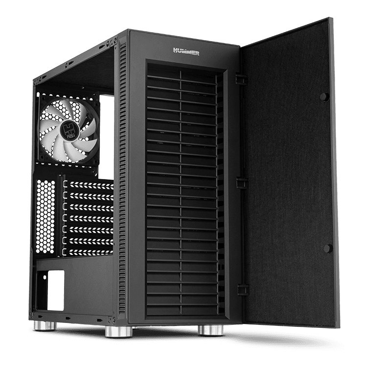Hummer Void es una semitorre con un diseño elegante y minimalista, propio de la línea Hummer, dotada de una gran flexibilidad a la hora de albergar configuraciones de alto rendimiento. Cuenta con paneles laterales, frontal y superior amortiguadores de ruido para que puedas disfrutar de las configuraciones más potentes de forma silenciosa.