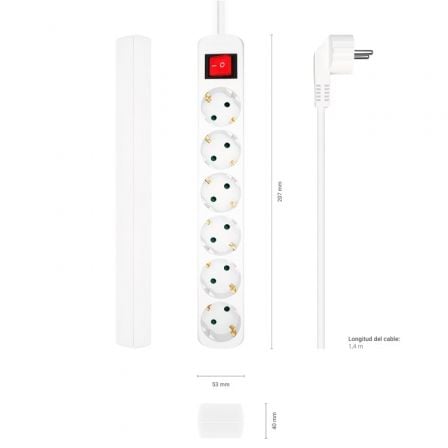 Regleta con Interruptor Aisens A154-0535/ 6 Tomas de Corriente/ Cable 1.4m/ Blanco