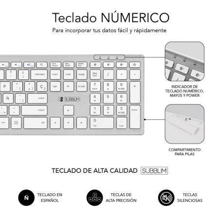 Teclado Inalámbrico por Bluetooth Subblim 2PUE200 Pure Extended/ Plata