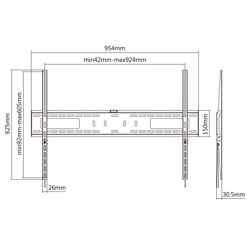 | Caracteristicas | Especificaciones – Para pantalla (monitor / plasma / LCD / LED) 60″”-100″” – VESA Máximo: 900x600mm – Carga Máxima: 75kg – Distancia de la pared: 30,5 mm – Color: Negro Contenido del Paquete – 1 x Soporte – 1 x Kit montaje (No incluye herramientas) – 1 x Manual de instalación |